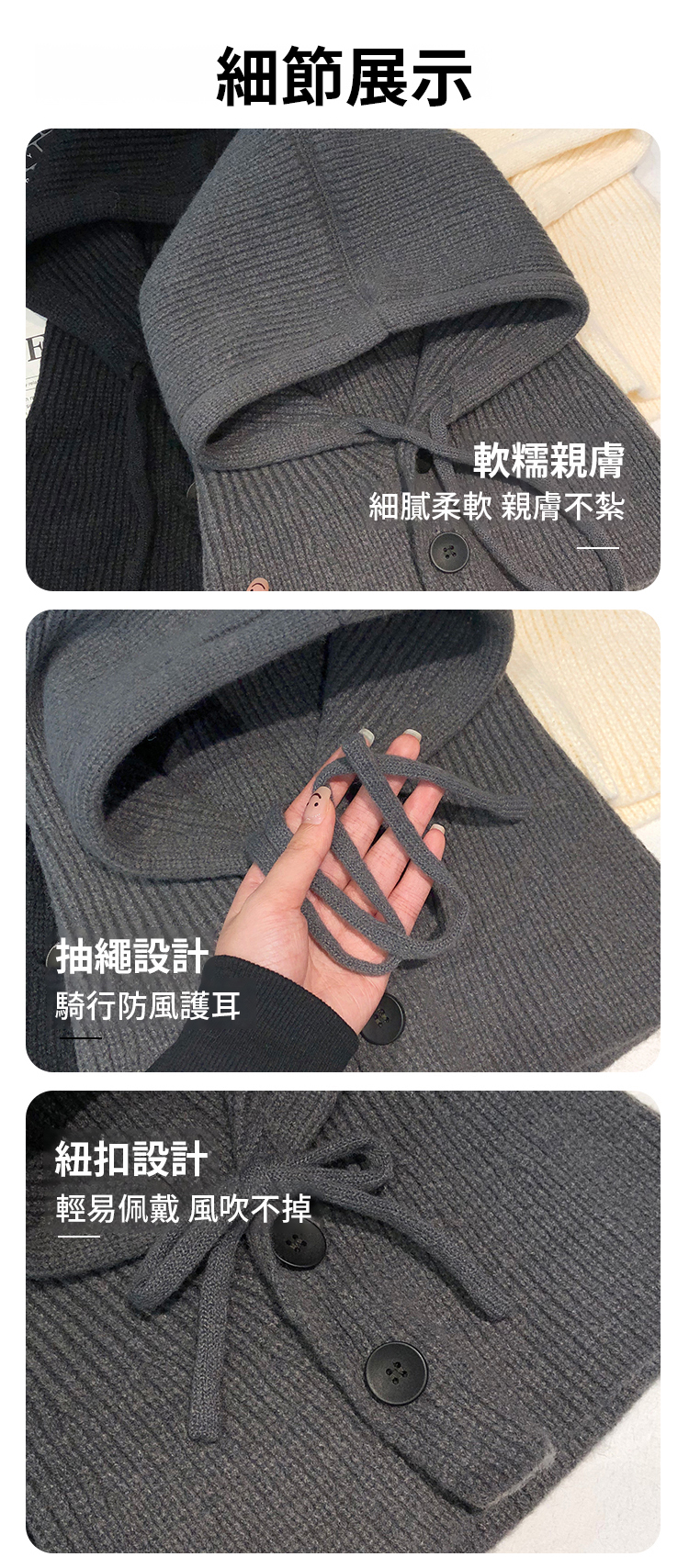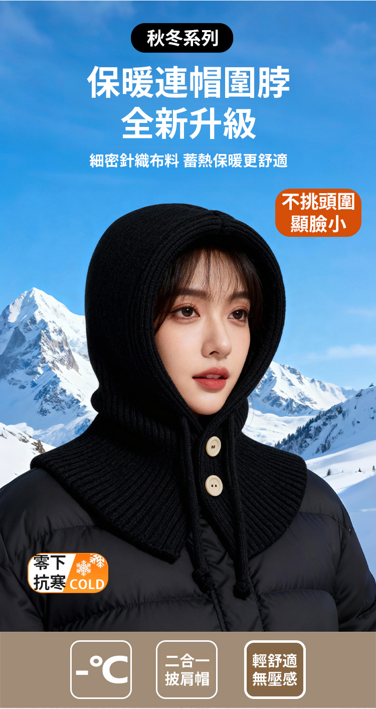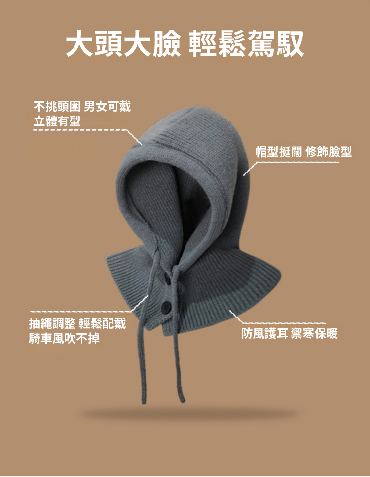 時尚護耳針織一體帽